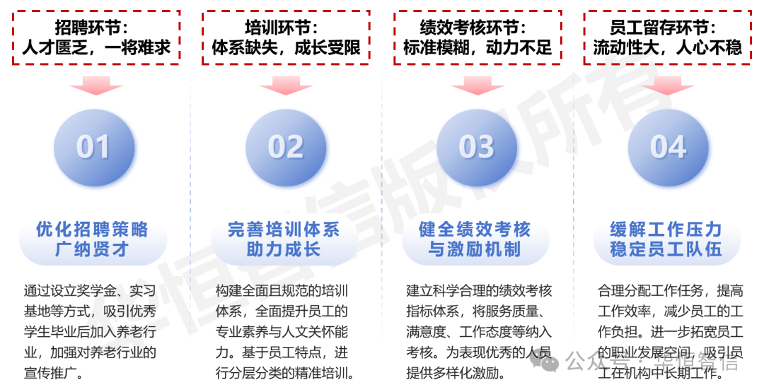 养老行业动作合乎民生福祉的紧张范畴,其成长离不开出色的人力资源治理动作底子。然而,目下养老行业正在人力资源治理方面面对着诸众逆境,如雇用坚苦、培训系统不完好、绩效调查与引发机制不健康以及员工留存率低等题目。这些题目不光影响了养老任职的质地和服从,也限制了养老行业的可连续成长。